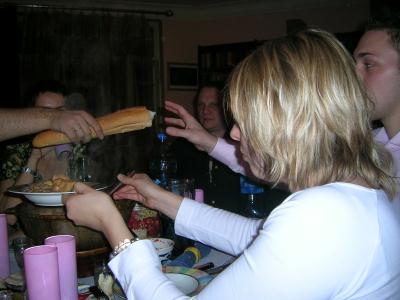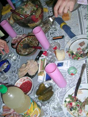 Doch es kam anders: ihr Mann Sergeij hat richtig aufgekocht - er hat es gern, wenn man viel isst ... da waren wir genau richtig! *g* Der Tisch war voll mit Speisen und Getränken. Es wurde viel gegessen, getrunken, geredet und gelacht.